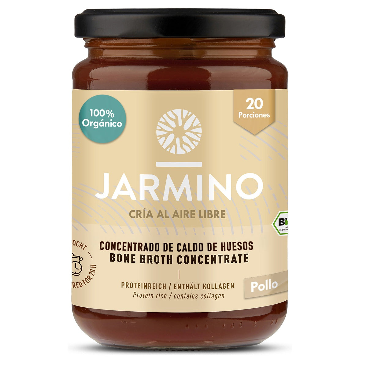 Nuestro concentrado de caldo de huesos, elaborado con ingredientes 100 % ecológicos y huesos de pollo criados en libertad, ofrece una fuente natural de colágeno, proteínas, aminoácidos y minerales. Es una opción ideal para quienes buscan complementar su alimentación diaria de forma saludable y equilibrada. Cada frasco rinde 20 porciones de un concentrado de caldo de pollo de altísima calidad. Ingredientes esenciales, calidad superior: Para preparar nuestro concentrado de caldo de huesos de pollo utilizamos solo tres componentes: huesos de pollo ecológicos de animales criados en libertad, agua pura y sal gema natural. Características de calidad: